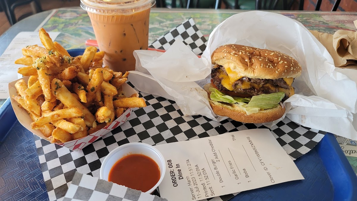 Three Asian women ran this burger place. They were friendly and smiled all the time and were super fast and efficient in getting the food out. The burgers were juicy and big. The fries were classic fried cooked perfectly. It's your typical classic burger place.